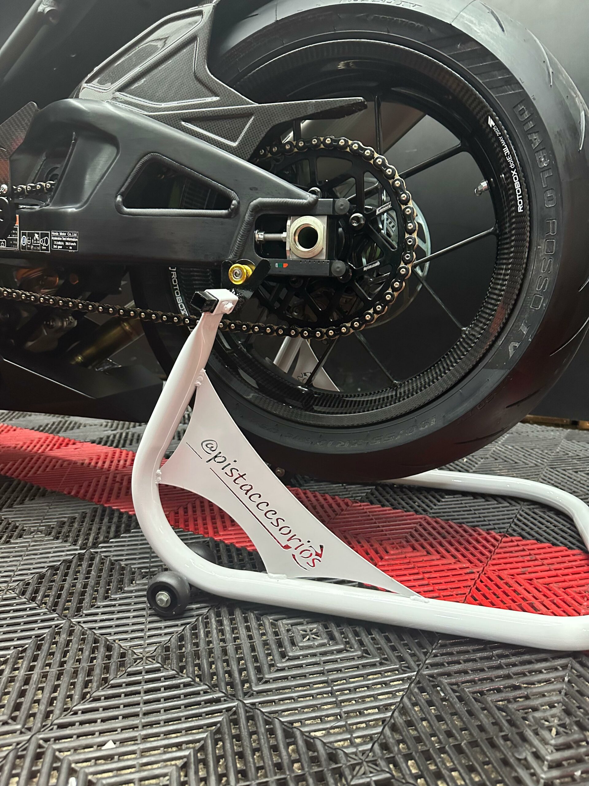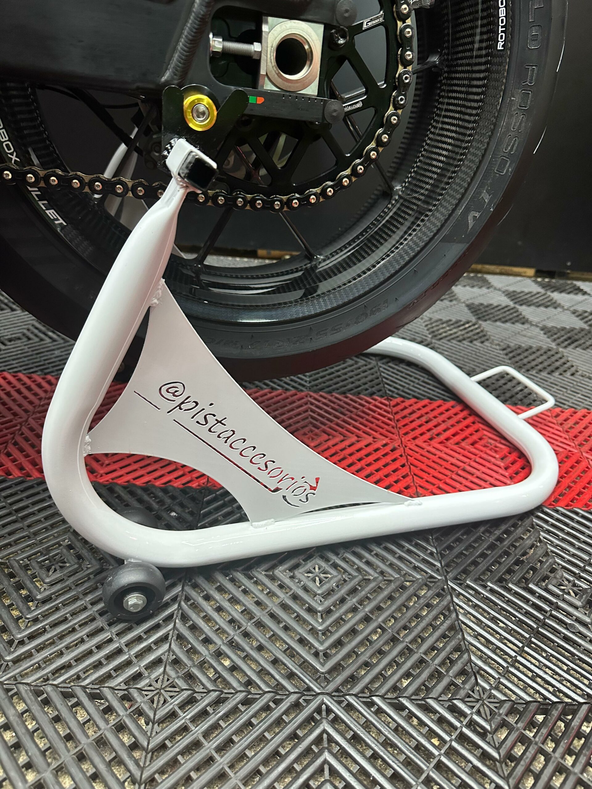 Los caballetes para motos de pista están diseñados para ofrecer estabilidad y facilidad al trabajar en motocicletas de alto rendimiento. Fabricado con materiales robustos y de alta calidad, permite levantar la moto de forma segura, proporcionando un soporte firme para tareas como el cambio de neumáticos, limpieza de la cadena, lubricación y otras reparaciones necesarias.