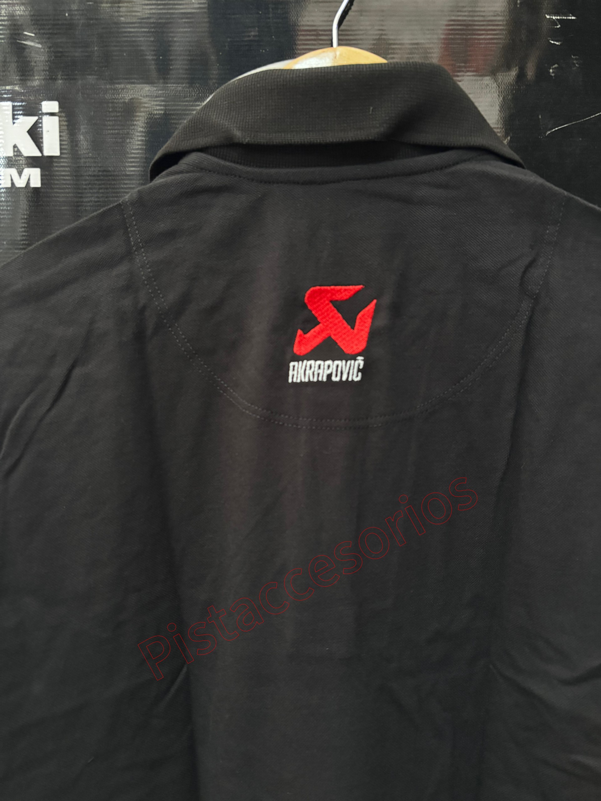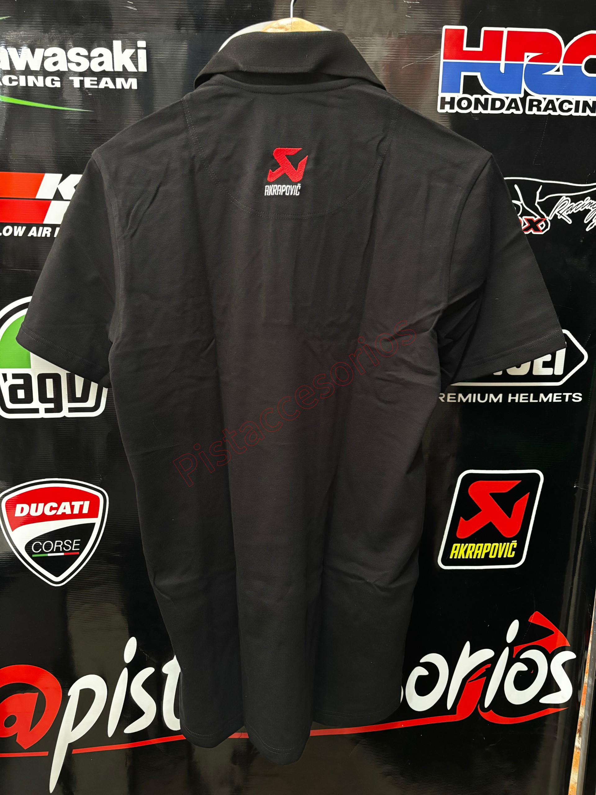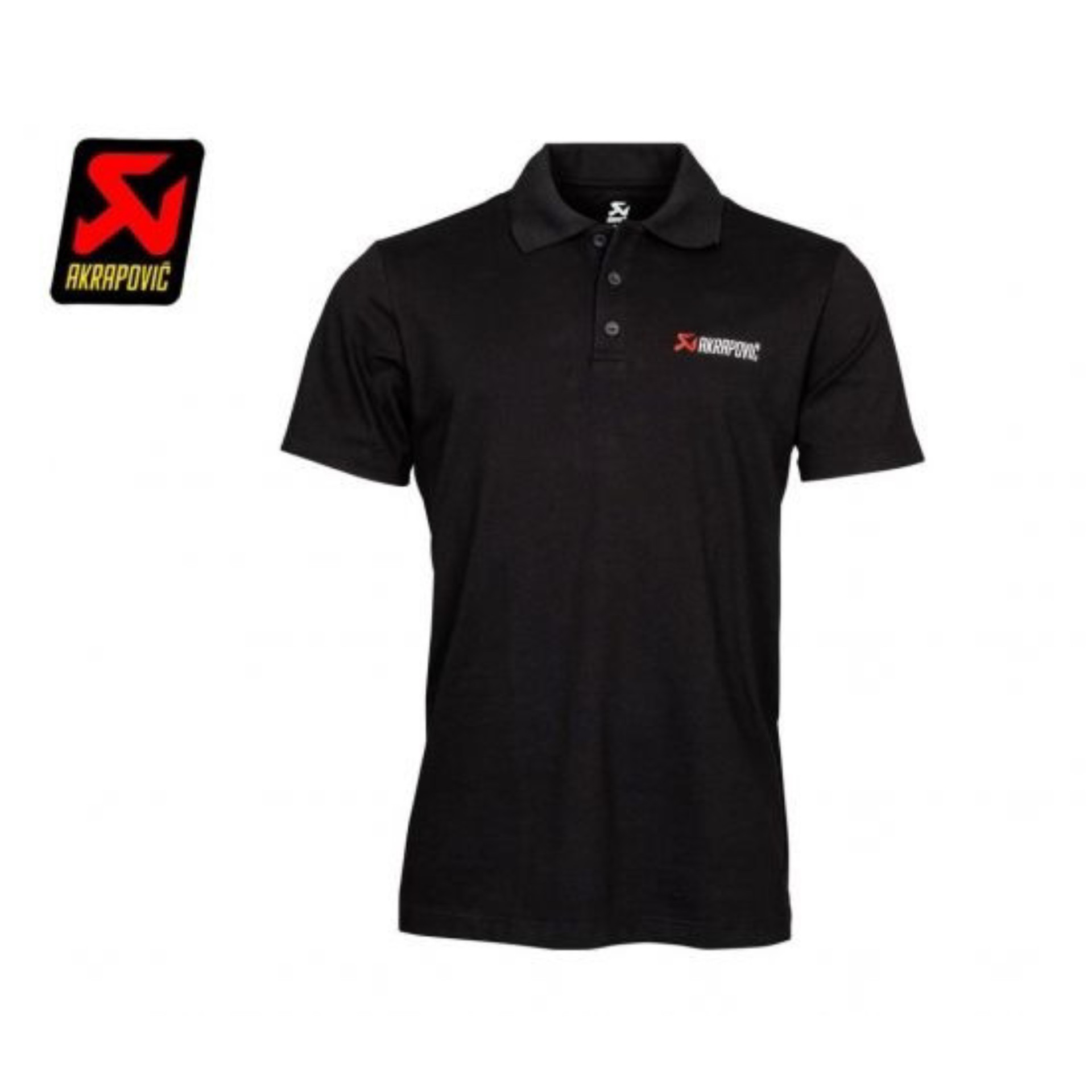 Polo con logo de Akrapovic sutilmente bordado en la parte delantera y trasera.